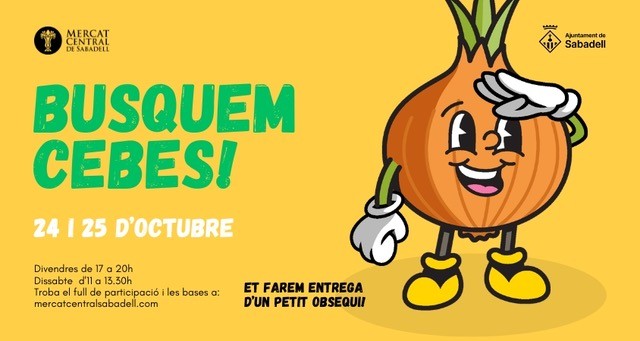 Aquest cap de setmana, el Mercat Central de Sabadell es converteix en un espai de joc molt especial! Us conviden a participar en una gimcana ben original: haureu de recórrer les parades del Mercat per trobar cinc cebes de colors diferents, amagades entre els productes dels paradistes.  Per jugar, només cal que agafeu un full de participació (el trobareu a l’Espai Cangur o al web del mercat), busqueu les cebes de colors i apunteu a quina parada heu vist cadascuna. No us preocupeu si no trobeu totes les cebes de seguida: n’hi ha deu repartides pel mercat, dues de cada color, i només cal trobar-ne una de cada.
